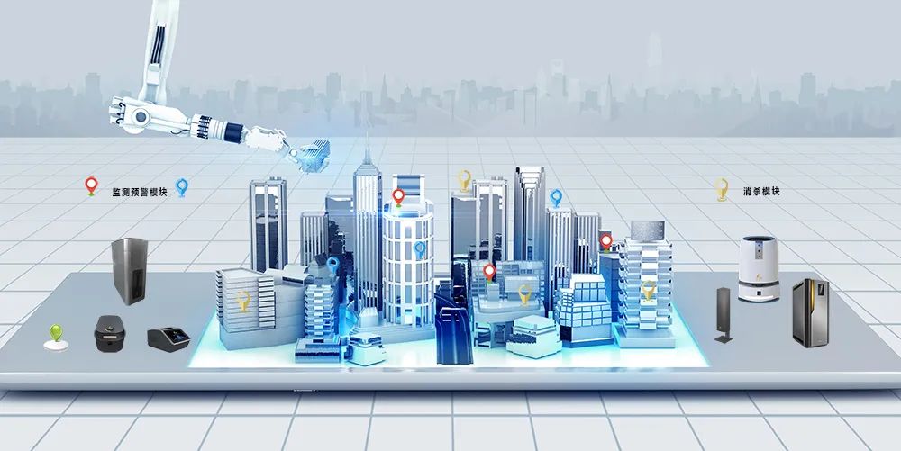 可以根据服务空间的差异化需求,对病毒监测预警模块、安全消杀模块的布局进行定制化设计,实现公共空间的环境管理。