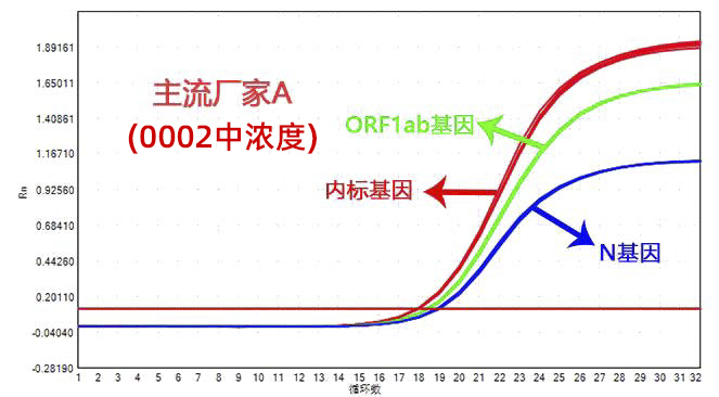 本产品涵盖的多个基因(新冠病毒N基因,E基因,ORF1ab基因部分区域,人源RNase P部分序列)拷贝数完全相同,操作时无需考虑不同基因添加量的问题,各基因扩增Ct值稳定相近,能够真实模拟新冠病毒样品。