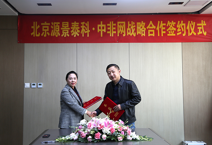 (中非网负责人李静波女士与源景泰科总经理朱坤先生签署协议)